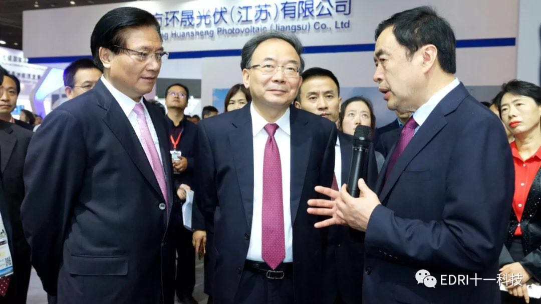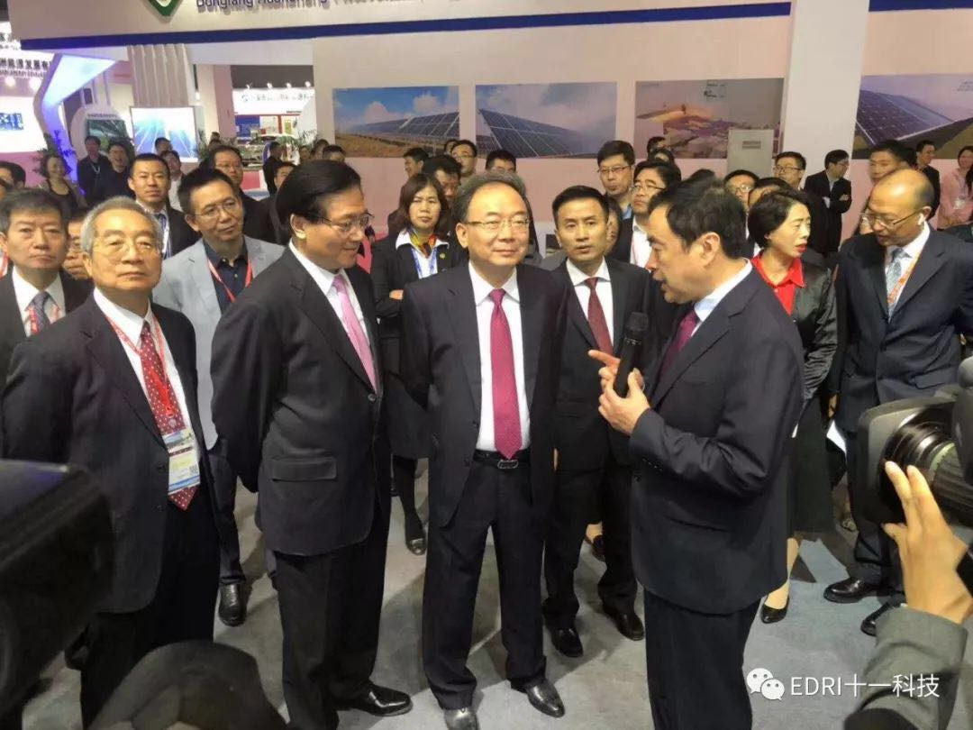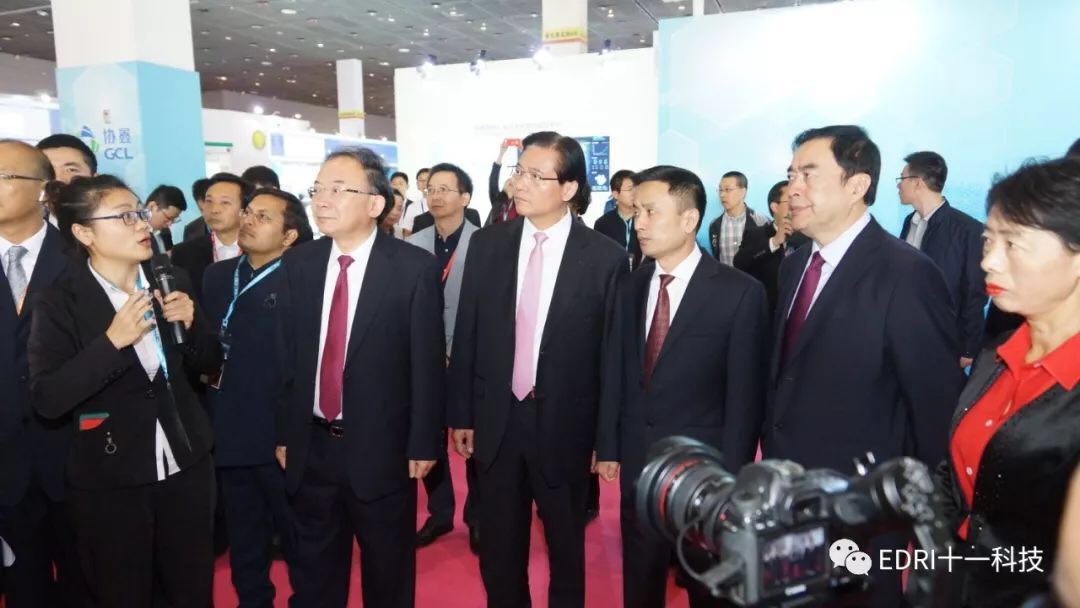 伟德体育董事长赵振元陪同市委、市政府领导参观了保利协鑫、远景能源、中环、远东集团、中设国联等参展商展台,了解各企业最新产品、技术等。