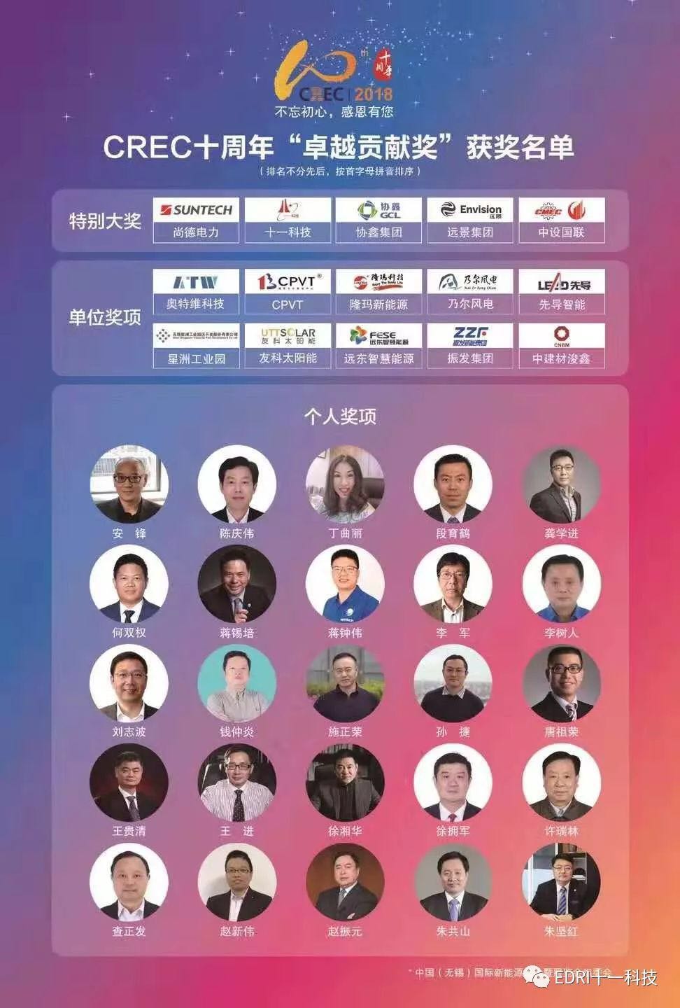 今年是无锡新能源大会走过的第十个年头,十年期间,无锡新能源大会得到了社会各界的大力支持,组委会设立CREC十周年“卓越贡献奖”,以表彰十年来对展会做出突出贡献的企业和个人。
