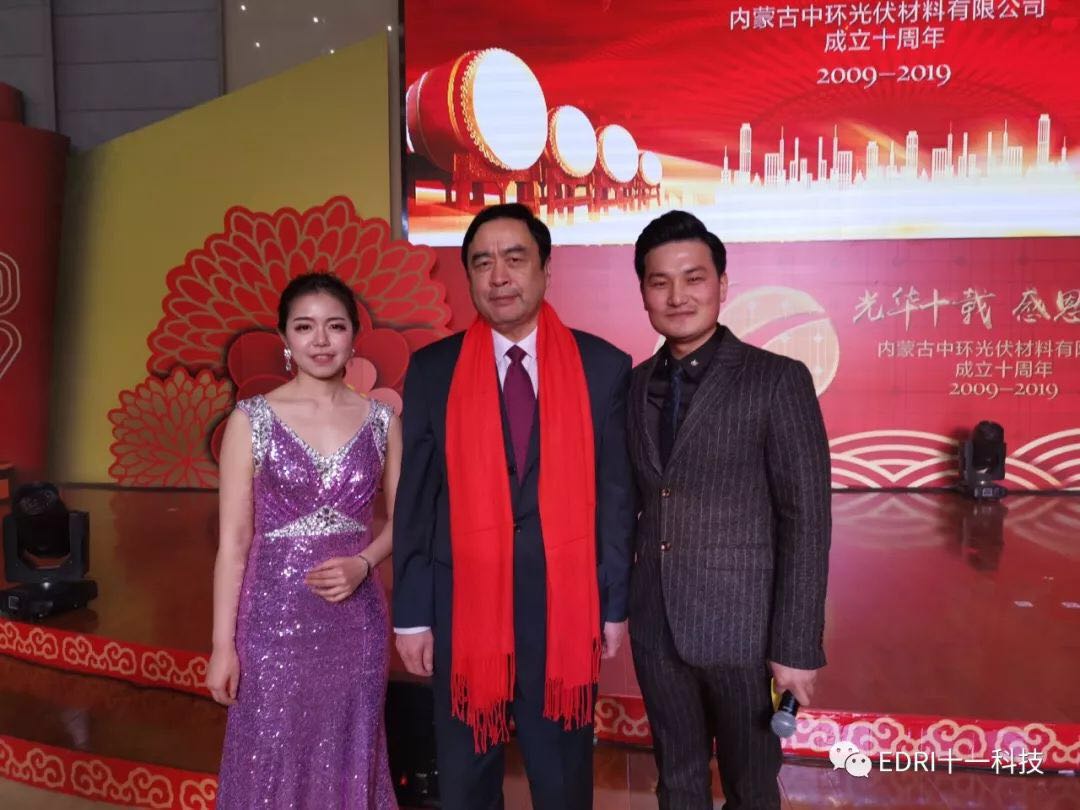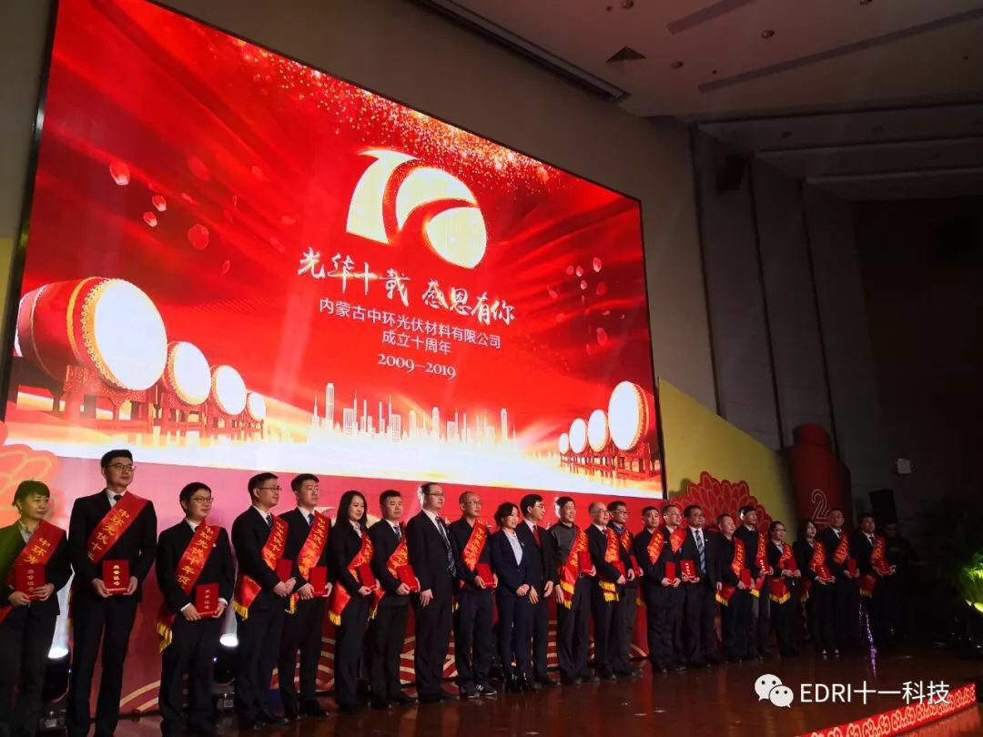 2019年3月10日下午,中环股份隆重举行“内蒙中环成立十周年庆活动”,中环集团总经理、中环股份董事长、总经理沈浩平,中环股份党委书记安艳清,中环集团总经济师杨永生出席活动,赵振元、曹建伟、何俊、徐彬等作为主嘉宾应邀出席。活动在内蒙中环二期报告厅举行,由中环股份副总经理、内蒙中环光伏材料有限公司董事长江云主持,近500人出席庆典活动。