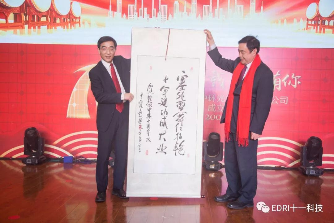 诗歌饱含历史深情与美好祝愿,并刻录在精美的纪念礼品中与赵振元亲自书写了的作品一起赠予中环。沈浩平同志给予高度评价,并感谢赵振元亲自送上的珍贵礼物。两位电子信息的大咖还就我国信息产业的发展和双方的合作进行了非常亲切地交流。