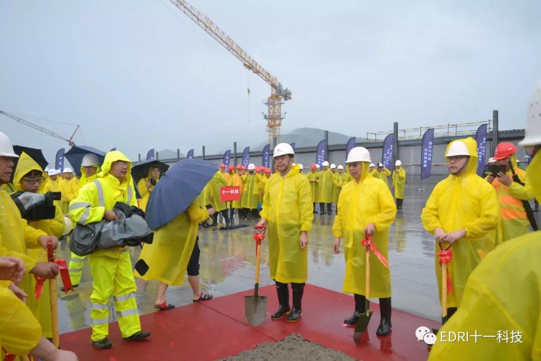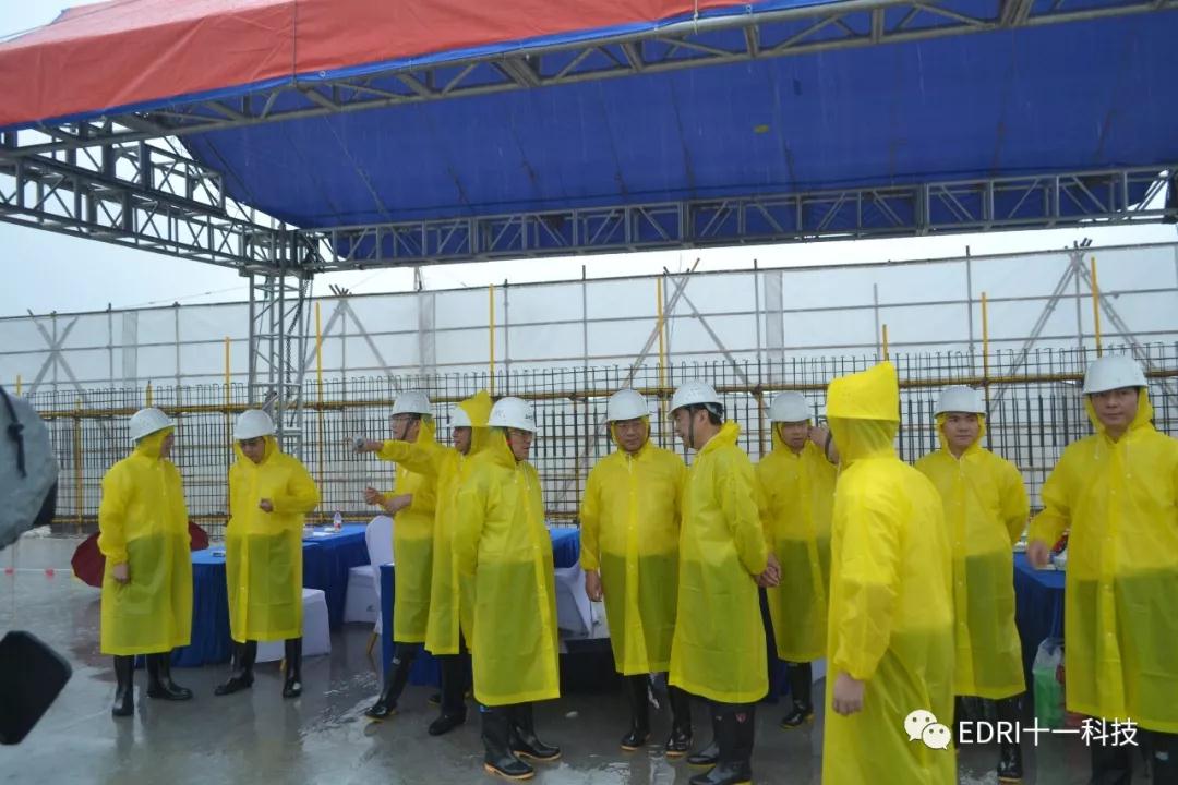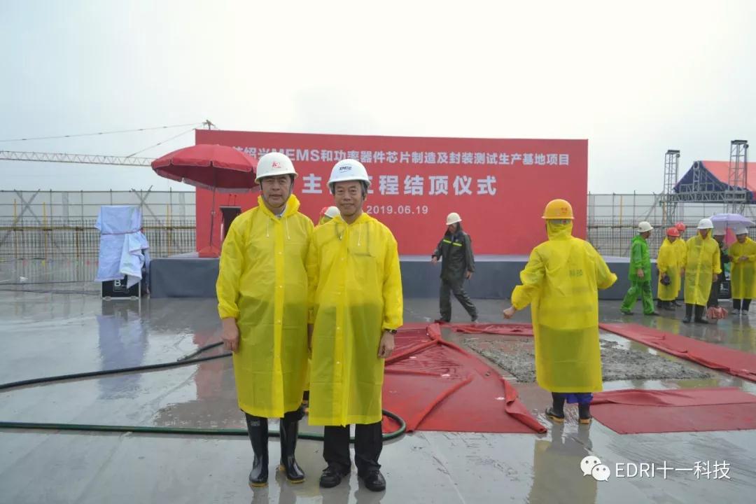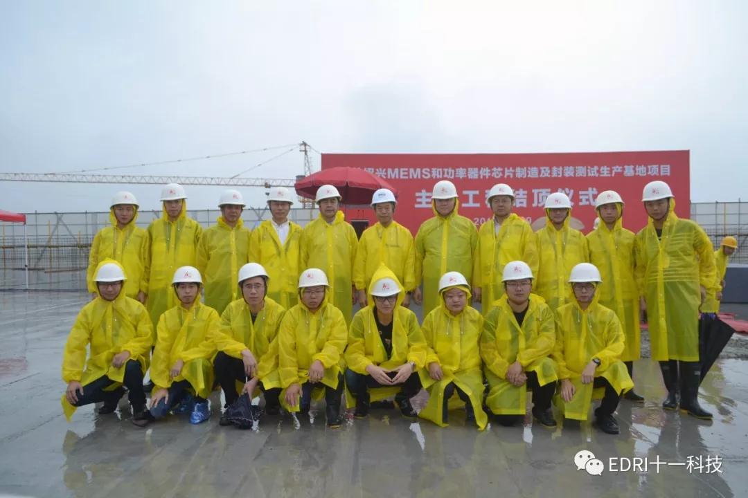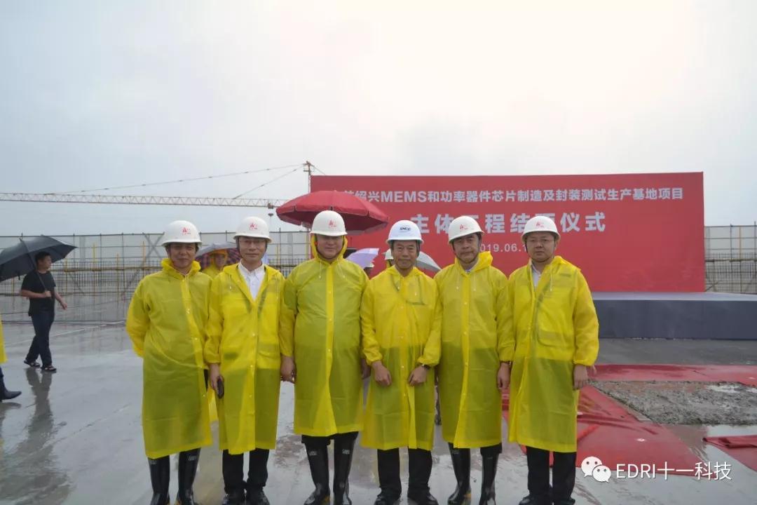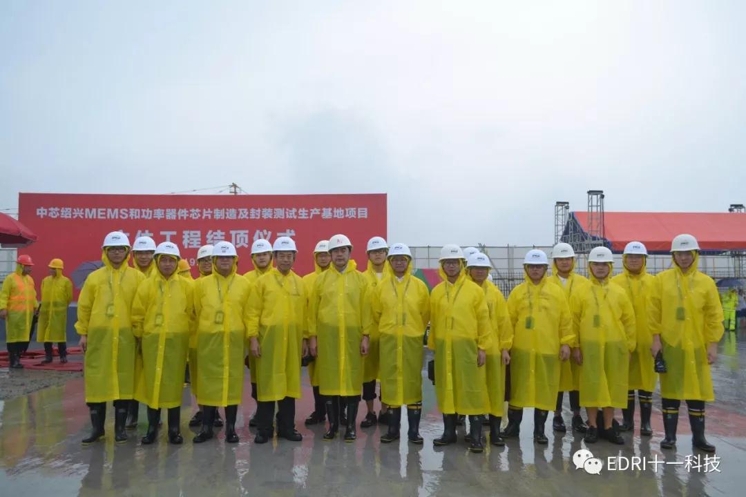 中芯绍兴项目在雨中进行封顶仪式,马卫光、陆维、孙哲君、高永岗、丁国兴、赵奇、赵振元、白焰等领导出席。